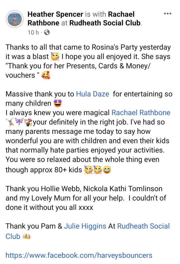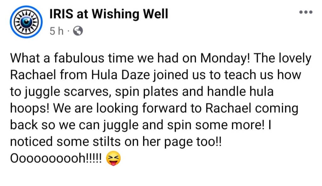 Danielle Ashley – Activities Ltd What a fantastic Hawaiian day/40th birthday celebration we have had! Thank you Hula Daze for showing our members how to hula hoop, plate spin, ribbon spin and fly like a butterfly. They drank mocktails, ate yummy cake and learned to limbo too! They have had a fantastic time.